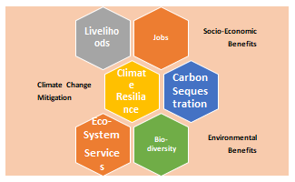 India’s goal under the Nationally Determined Contribution (NDC) to create an additional carbon sink of 2.5 to 3.0 billion tons of carbon dioxide–equivalent (gigatons [Gt] CO2e) by 2030 through improved forest and tree cover. Hence, Agro-forestry can play a role to meet this national goal.