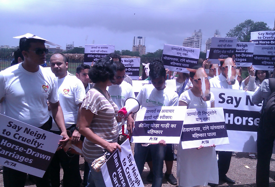 Awareness against horse drawn carriages by Peta with Green Yatra